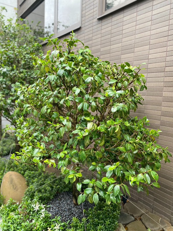 白寶塔 樹齡約15 年,為台灣原生種,來自三芝淡水,於民國112年05月10日種植於大樓南向庭園,共3顆,為台灣原生種,花朵為白色